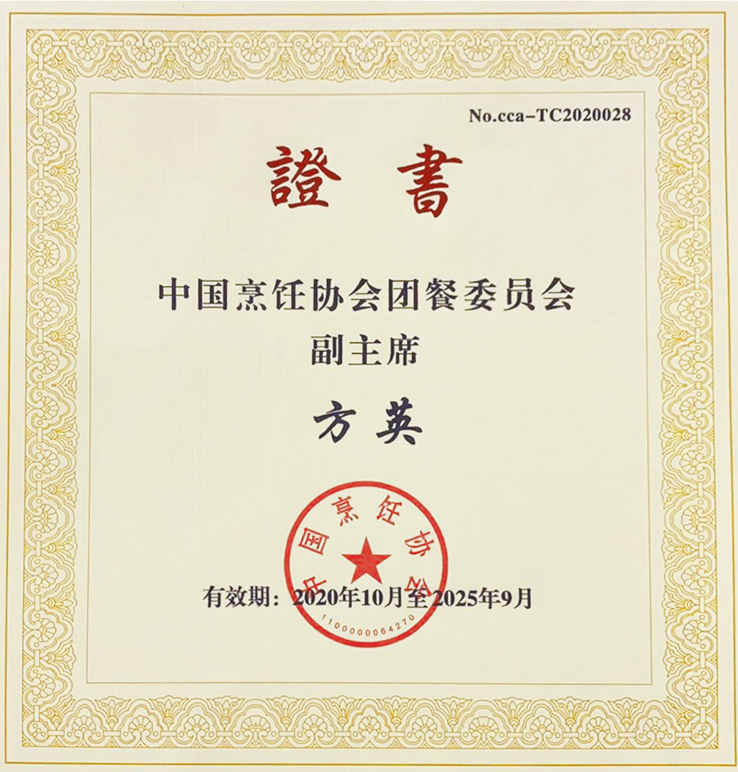 • 授予方英女士-中國烹飪協(xié)會團餐委員會副主席